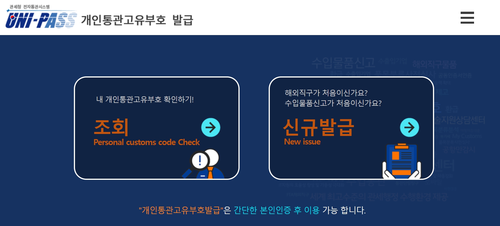 먼저 관세청 유니패스 공식 홈페이지에 접속합니다.
